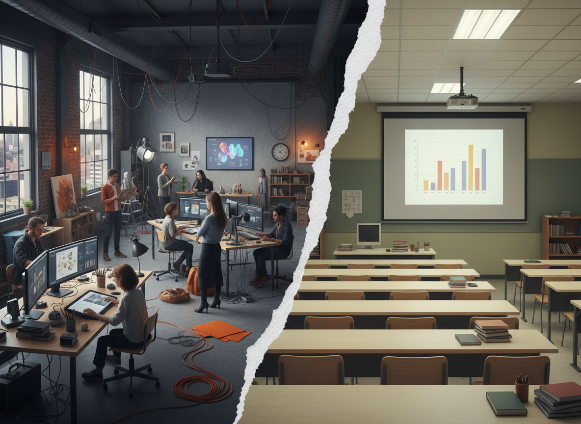 Traditional models were built around fixed timetables and standardised curricula. That made sense when institutions controlled access to knowledge. Today’s learners are digitally fluent, professionally active, and surrounded by free expertise. When so much learning is freely available, fees should buy transformation embedded in practice — not transmission detached from it.